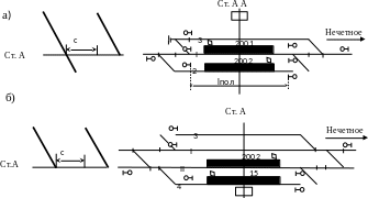 танционный интервал скрещения τс– минимальный промежуток времени между прибытием на станцию или пропуском через нее одного поезда и отправлением на тот же перегон поезда встречного направления (рисунок 4.4а и 4.4б)