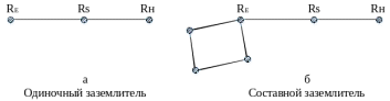 Измерив значения сопротивлений отдельных элементов заземлителя RE1, RE2, RE3, .. , REN, определяют общую величину сопротивления системы по формуле: