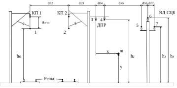 Схема размещения проводов контактной подвески с усиливающим проводом представлена на рисунке 2.1