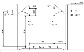Рисунок 2.1 Схема размещения проводов контактной сети с УП