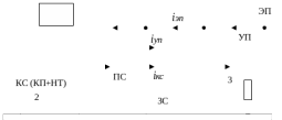 Рельсы (земля), ЗС и ЭП образуют замкнутые электрические контуры, в которых под действием ЭДС, наведенной от токов УП и КП + НТ за счет явления взаимоиндукции, протекает ток, направленный практически противоположно этим токам (рисунок 2.3).