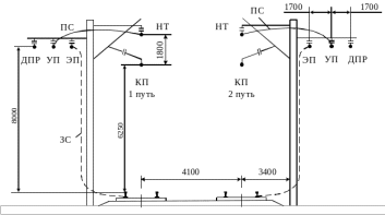 Рисунок 2.2 – Схема расположения проводов контактной сети с ЭУП