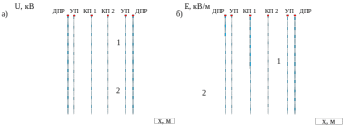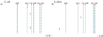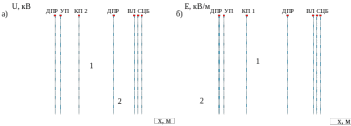 Результаты вычислений напряженности и напряжения приведены в таблице Д.3 и представлены на графиках (рисунок 3.12)