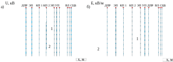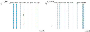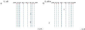 Результаты расчета напряженности и напряжений приведены в таблице Г.6 и представлены на графиках (рисунок 3.18).