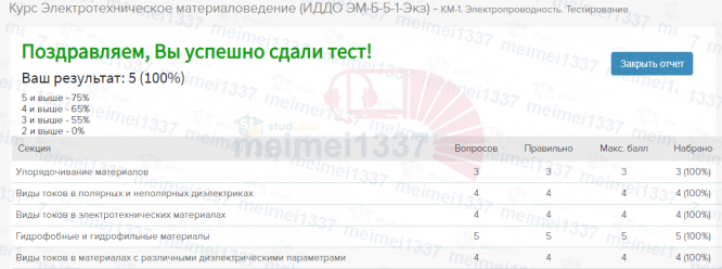 Для студентов ИДДО НИУ «МЭИ» по предмету Электротехническое материаловедениеКМ-1. Электропроводность. Тестирование - 100%КМ-1. Электропроводность. Тестирование - 100%