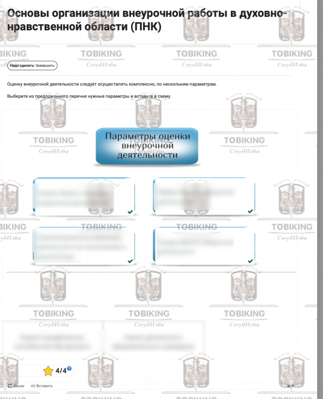 Под ___ деятельностью следует понимать ___деятельность, направленную на достижение ___ результатов освоения ___ образовательных программ (предметных, метапредметных и личностных), осуществляемую в формах, отличных от ___ Практическое занятие 1. Задание 6 При организации предметно-развивающей среды кабинета, в котором проводятся занятия по духовно-нравственному воспитанию и развитию, педагог может использовать принцип зонирования помещения. Соотнесите содержание левосторонних блоков схемы и правосторонних её элементов. Сформируйте едину....
