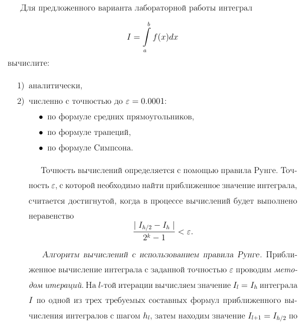 Лабораторная работа 3, 4: Численные методы вычисления определённого интеграла. (Определенный интеграл) вариант 1, 2
