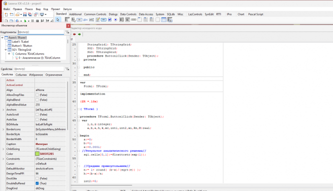 Лабораторная работа "Численные методы вычисления определённого интеграла" по методичке А.А.Федотова, П.В.Храпова 2012 г написанная на Паскале в Лазарусе . В файлах содержится 2 варианта исполнения работы - программа и приложение. В программе можете посмотреть суть алгоритма решения. В приложении алгоритм, решающий только вариант с функцией e**x + 1 т.к. по заданию преподавателя, общее решение не требовалось. При этом обозначения остались почти те же, поэтому не трудно будет переписать приложение под свой вариант.