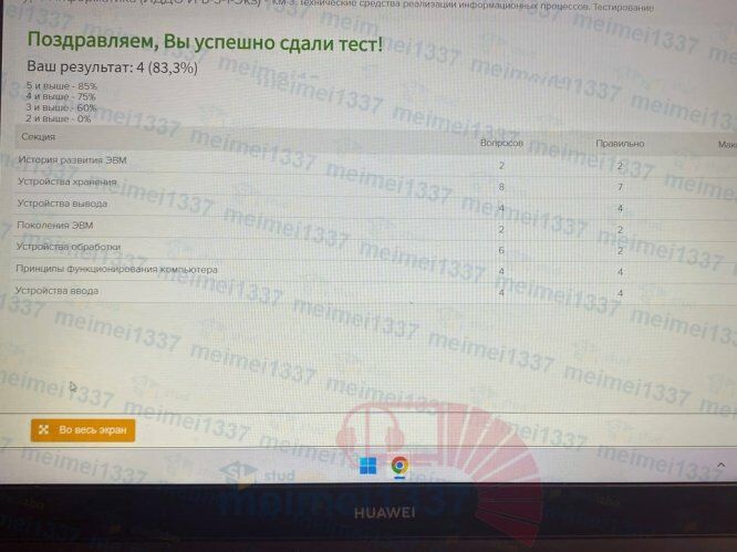 Для студентов ИДДО НИУ «МЭИ» по предмету ИнформатикаКМ-3. Технические средства реализации информационных процессов. Тестирование - 83.3%КМ-3. Технические средства реализации информационных процессов. Тестирование - 83.3%