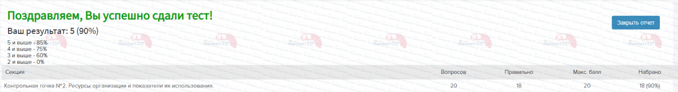 Для студентов ИДДО НИУ «МЭИ» по предмету Экономика фирмыКМ-2. Ресурсы организации и показатели их использования. Тестирование - 90%КМ-2. Ресурсы организации и показатели их использования. Тестирование - 90%