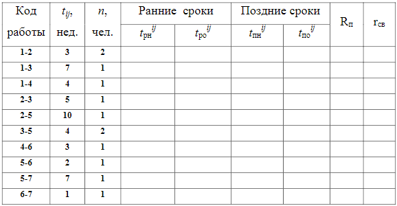 Вариант №3. Построить сетевой график. Провести расчет сетевого графика в табличной и графической форме. Рассчитать резервы времени работ. Определить коэффициенты напряженности 3-ех путей (по выбору).