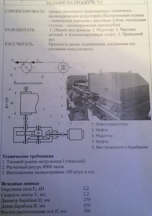 Привод ленточного конвейера с коническо-цилиндрическим зубчатым редуктором