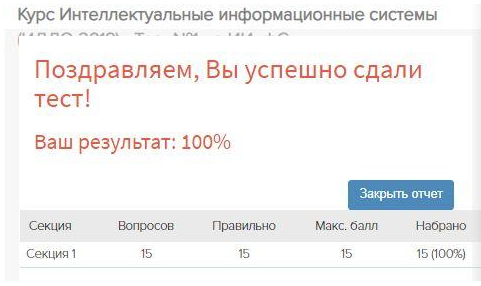 Для студентов НИУ «МЭИ» по предмету Интеллектуальные информационные системы (ИИС)Тест 1 (100%)Тест 1 (100%)