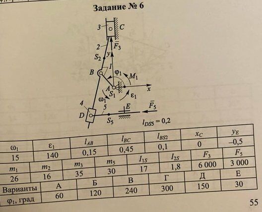 ДЗ: Силовой расчет, угол 120 вариант 6