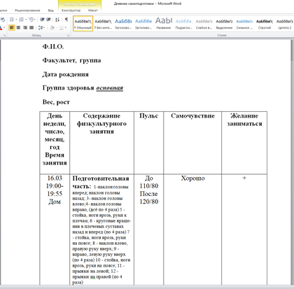 Для студентов МГТУ им. Н.Э.Баумана по предмету Физическая культураДневник самоподготовки основная группа Дневник самоподготовки основная группа