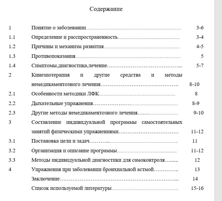(ниже представлено содержание реферата).