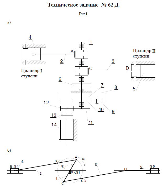 Другое 62: Проектирование и исследование механизмов двухступенчатого двухцилиндрового поршневого компрессора (вариант №62Д)