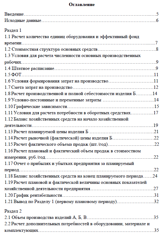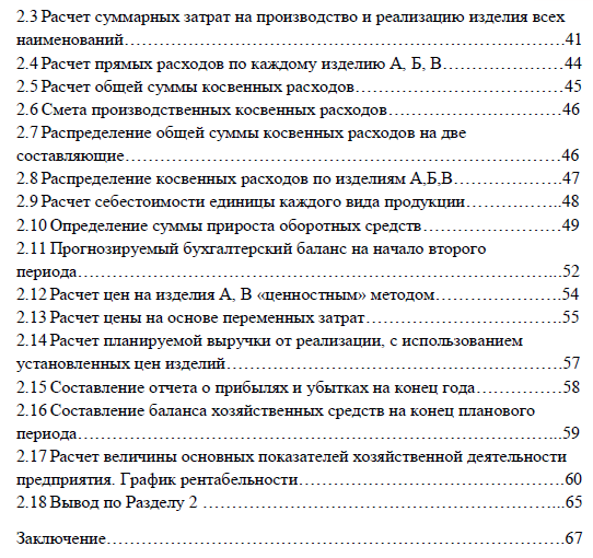 Во втором разделе делаются плановые расчёты, аналогичные первому разделу, с той лишь разницей, что теперь производится 3 вида изделий. Производится расчёт показателей хозяйственной деятельности и итогам анализа делаются выводы об эффективности деятельности предприятия, и прогнозируется его дальнейшая деятельность.