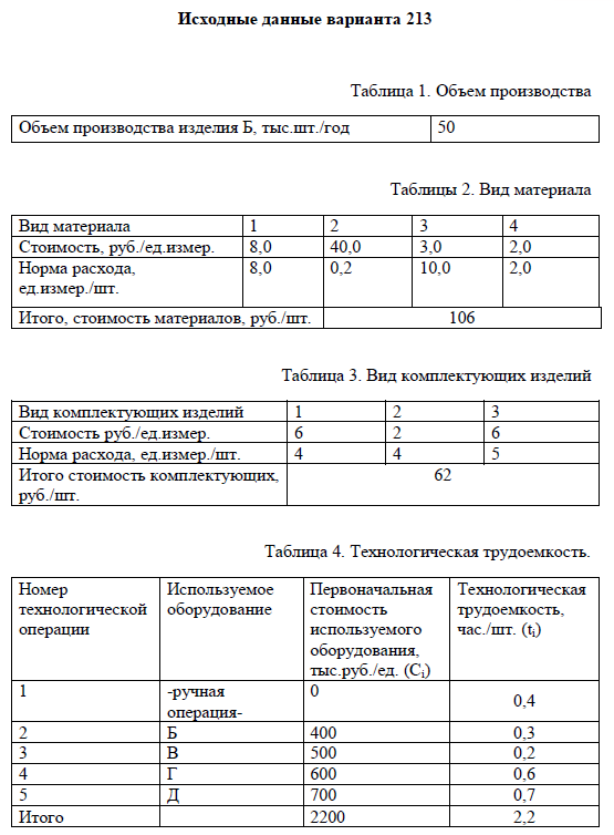 В первом разделе предприятие начинает свою деятельность с производства лишь одного изделия Б. Период моделирования равен периоду планирования, т.е. одному календарному году. Рыночные условия формируются исполнителем путем расчета фактических объемов продаж и цен, отличных от плановых значений.