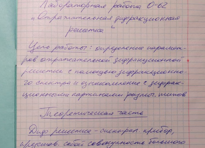 Лабораторная работа О: Отражательная дифракционная решетка вариант 62