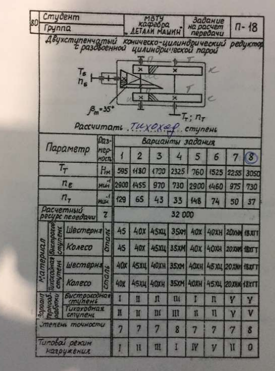 ДЗ П-18: Расчет передачи вариант 8