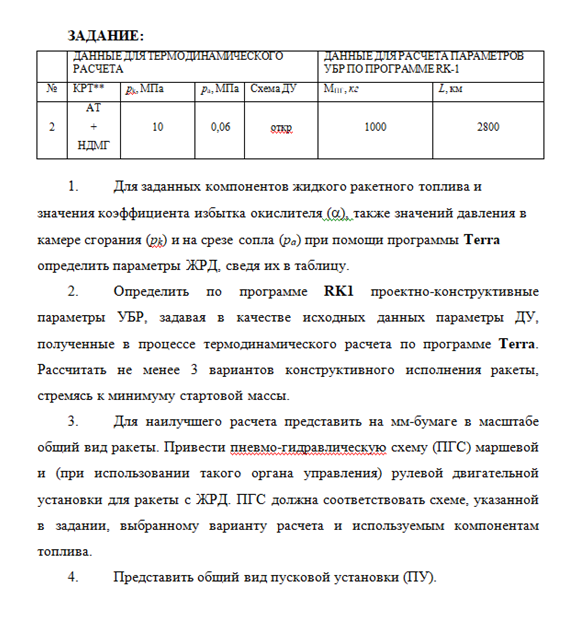 Курсовая работа: Проектирование баллистической ракеты Вариант №2 (АТ+НДМГ, открытая схема)
