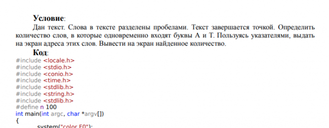 Условие: Дан текст. Слова в тексте разделены пробелами. Текст завершается точкой. Определить количество слов, в которые одновременно входят буквы А и Т. Пользуясь указателями, выдать на экран адреса этих слов. Вывести на экран найденное количество. ![]()