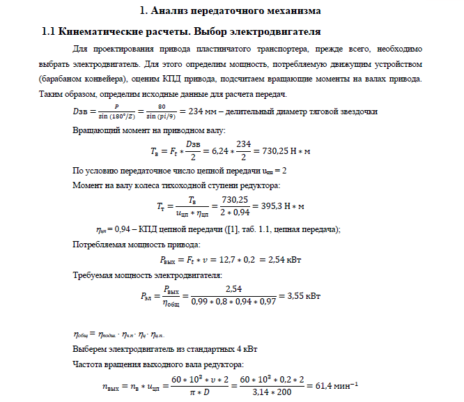 Привод пластинчатого транспортера с цилиндро-червячным мотор-редуктором (задание №556)
