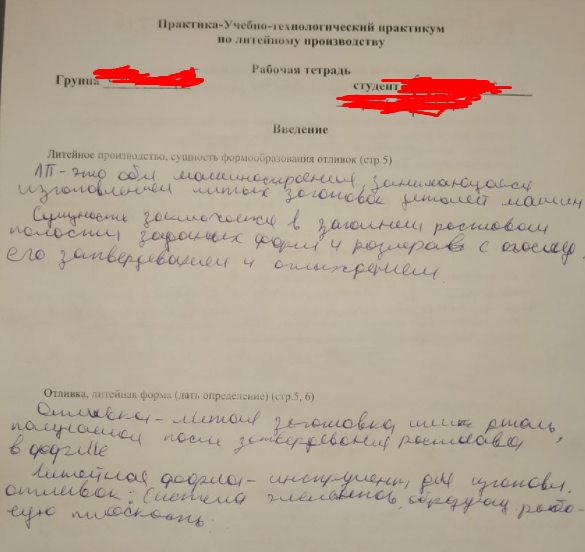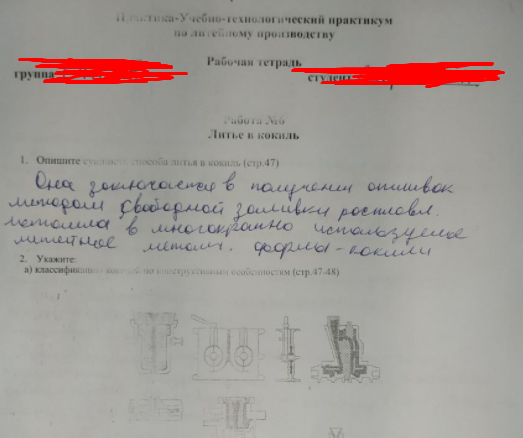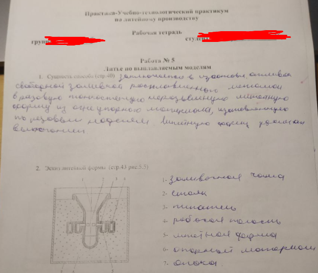 Рабочая тетрадь: Литейное производство