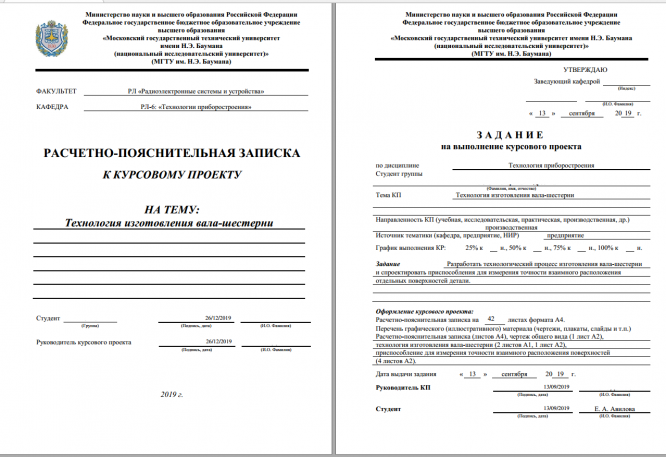 Для студентов МГТУ им. Н.Э.Баумана по предмету Технология приборостроенияТехнология изготовления вала-шестерниТехнология изготовления вала-шестерни
