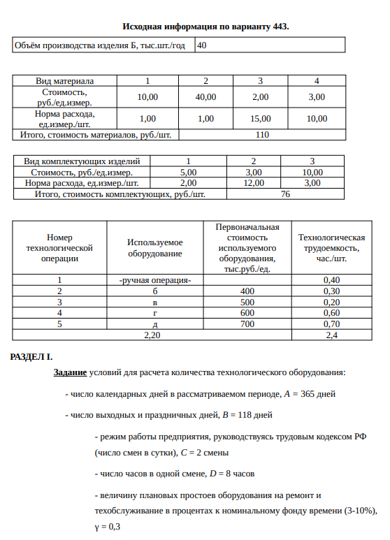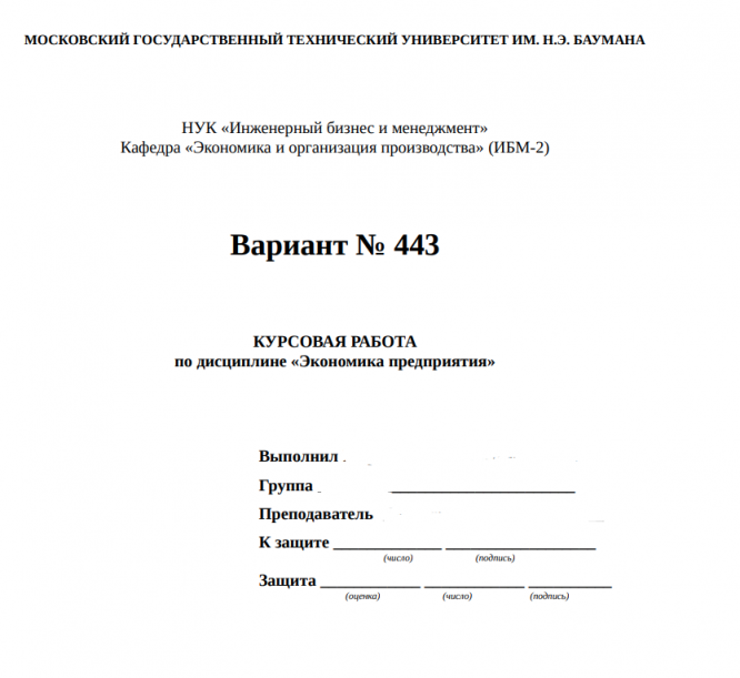 Для студентов МГТУ им. Н.Э.Баумана по предмету Экономика предприятияКурсовая работа - Вариант № 443Курсовая работа - Вариант № 443