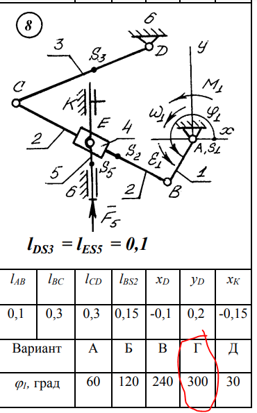 Вариант 8 - ДЗ №1 - Структурный анализ механизма (Угол 310)