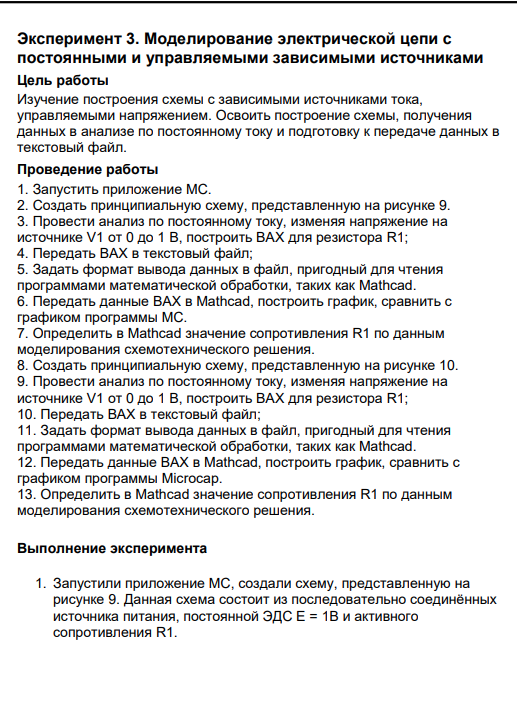 Цель работы Изучение построения схемы с зависимыми источниками тока, управляемыми напряжением. Освоить построение схемы, получения данных в анализе по постоянному току и подготовку к передаче данных в текстовый файл.