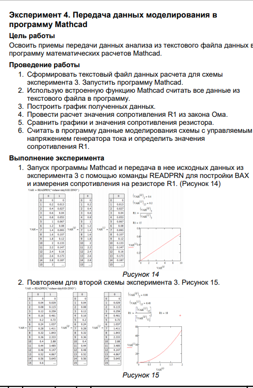 Эксперимент 4. Передача данных моделирования в программу Mathcad