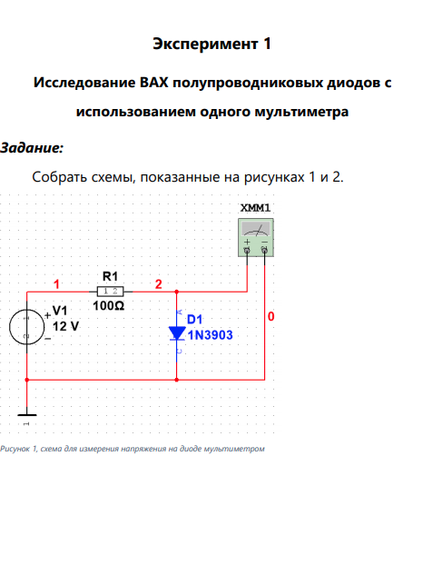 Исследование ВАХ полупроводниковых диодов с использованием одного мультиметра Задание: Собрать схемы, показанные на рисунках 1 и 2.
