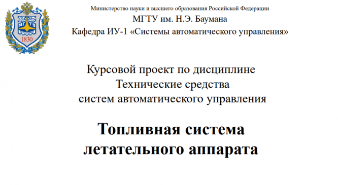 Для студентов МГТУ им. Н.Э.Баумана по предмету Технические средства систем автоматического управленияТопливная система летательного аппаратаТопливная система летательного аппарата