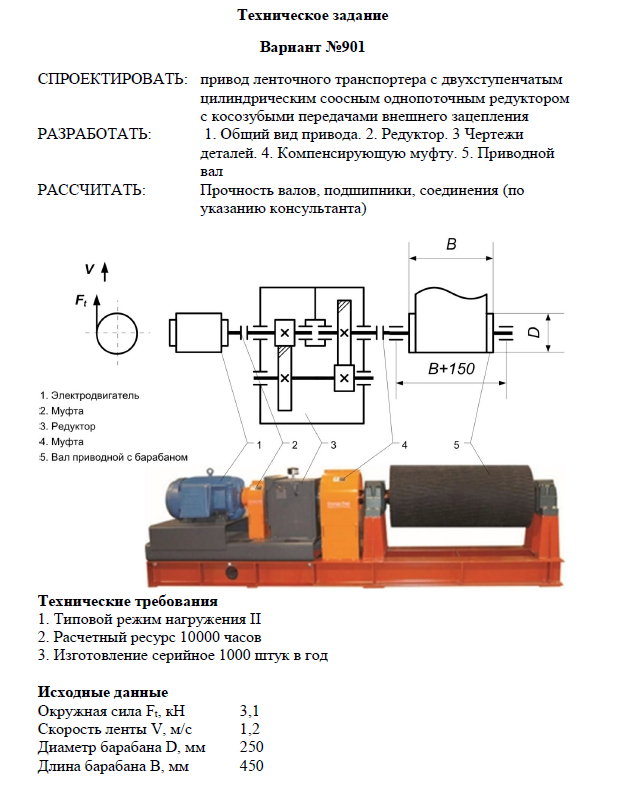 Курсовая работа ДМ: Привод ленточного транспортера ДМ 901.00.00 ПЗ вариант 901