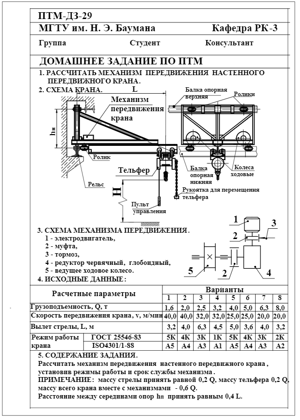 Для студентов МГТУ им. Н.Э.Баумана по предмету Подъёмно-транспортные машины (ПТМ)Расчёт механизма подъёмно-транспортной машины (ПТМ)Расчёт механизма подъёмно-транспортной машины (ПТМ)