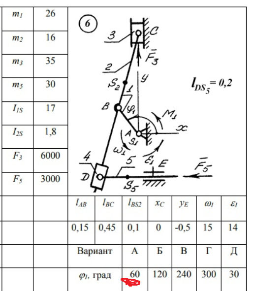 ДЗ: Структурный и кинематический анализ механизма, угол 60 (Вариант 6) вариант 6