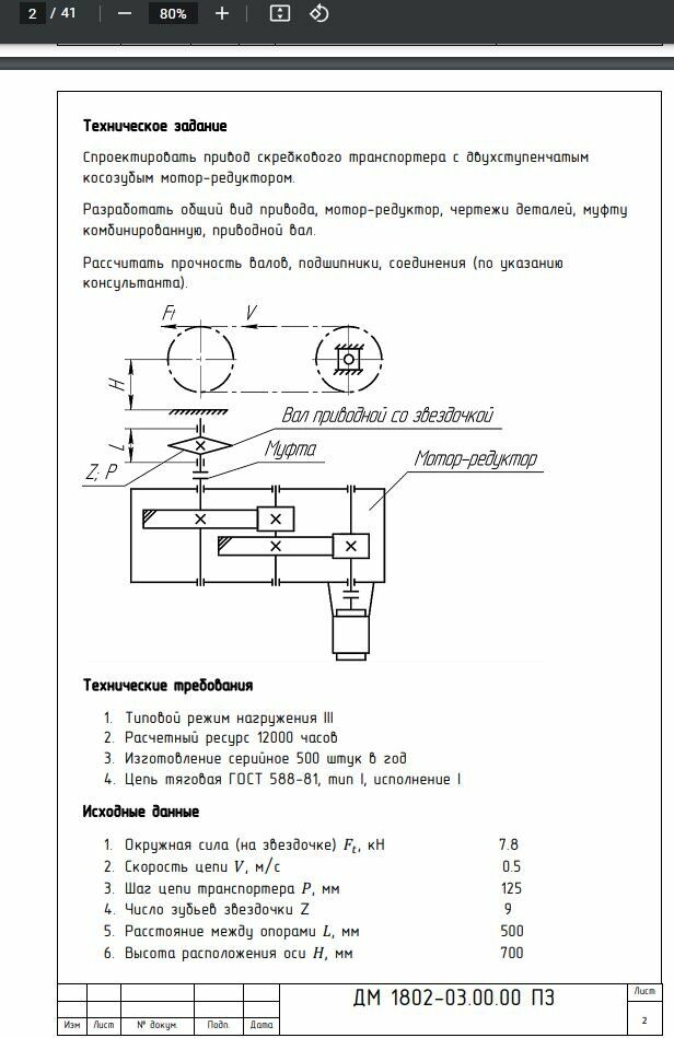 Курсовая работа ДМ: ДМ 1802 - Привод скребкового транспортера с двухступенчатым косозубым мотор-редуктором вариант 1802