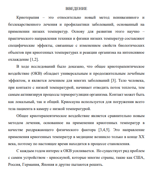 Криотерапия – это относительно новый метод неинвазивного и безлекарственного лечения и профилактики заболеваний, основанный на применении низких температур. Основу для развития этого научно – практического направления техники и физики низких температур составляют специфические эффекты, связанные с изменением свойств биологических объектов при криогенных температурах и реакции организма на интенсивное охлаждение [1,2]. В ходе исследований было доказано, что общее криотерапевтическое воздействие (ОКВ) обладает универсальным и продолжительным лечебным эффектом, и является лечением для многих заболеваний [3]. Тело человека, при контакте с низкой температурой, начинает отводить поток теплоты, тем самым активизируя процессы терморегуляции организма. Контакт может быть как локальный, так и общий. Криосауна используется для погружения всего тела пациента в камеру с низкой температурой.