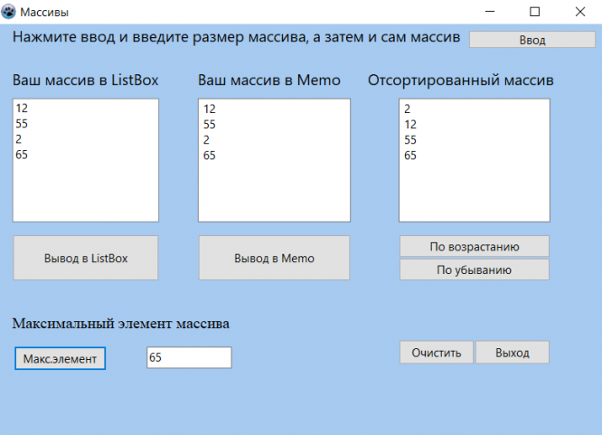 Для студентов по предмету ИнформатикаLazarus Вывод массива в ListBox и Memo, сортировка и нахождение максимального элементаLazarus Вывод массива в ListBox и Memo, сортировка и нахождение максимального элемента
