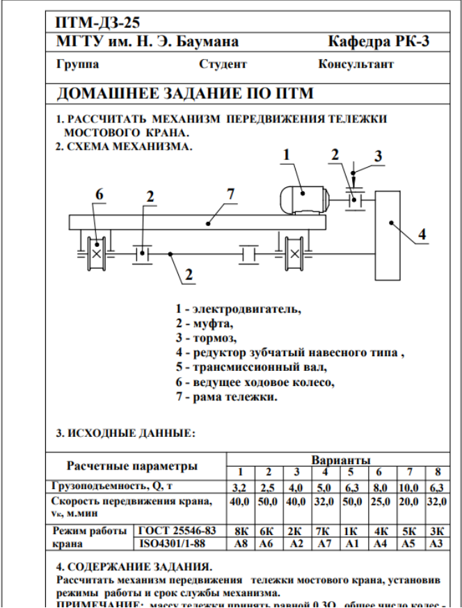 Для студентов МГТУ им. Н.Э.Баумана по предмету Подъёмно-транспортные машины (ПТМ)Расчёт механизма подъёмно-транспортной машины (ПТМ)Расчёт механизма подъёмно-транспортной машины (ПТМ)