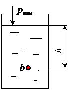Определить, на какой глубине h в открытом резервуаре избыточное давление составляет pu=104 Па. Плотность жидкости ρ=950 кг/м3 (рис. 2.8).