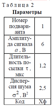 - Амплитуда сигнала на входе демодулятора a, длительность посылки τ, дисперсия шума на входе демодулятора σ2 определяются подвариантом (табл. 2).