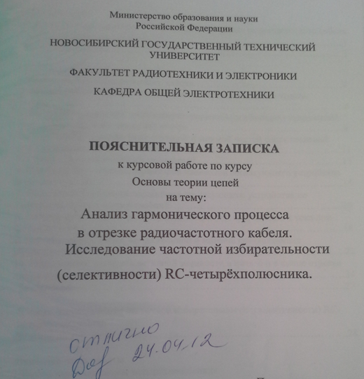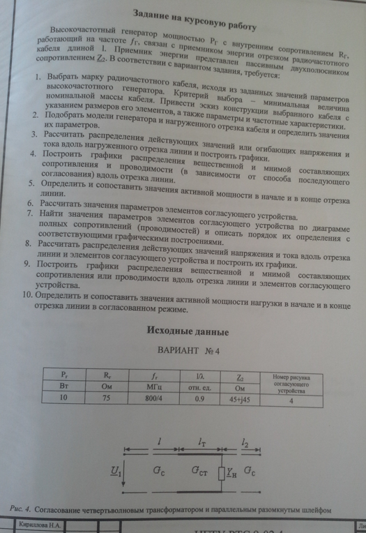 Для студентов НГТУ по предмету Основы теории цепей (ОТЦ)Вариант 4 - Группа 4 - КП - Анализ гармонического процесса в отрезке радиочастотного кабеляВариант 4 - Группа 4 - КП - Анализ гармонического процесса в отрезке радиочастотного кабеля