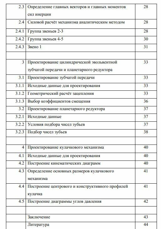 Расчётно-пояснительная записка к курсовому проекту "Проектирование и исследование механизмов движения автомобиля" содержит 44 страницы машинописного текста, 13 рисунков, 10 таблиц. В расчётно-пояснительной записке приведено: проектирование основного механизма, определение закона движения звена приведения, расчёт дополнительной маховой массы, силовой расчёт основного механизма аналитическим методом, проектирование цилиндрической эвольвентной зубчатой передачи, проектирование однорядного планетарного редуктора с одним внешним и одним внутренним зацеплениями и проектирование кулачкового механизма.