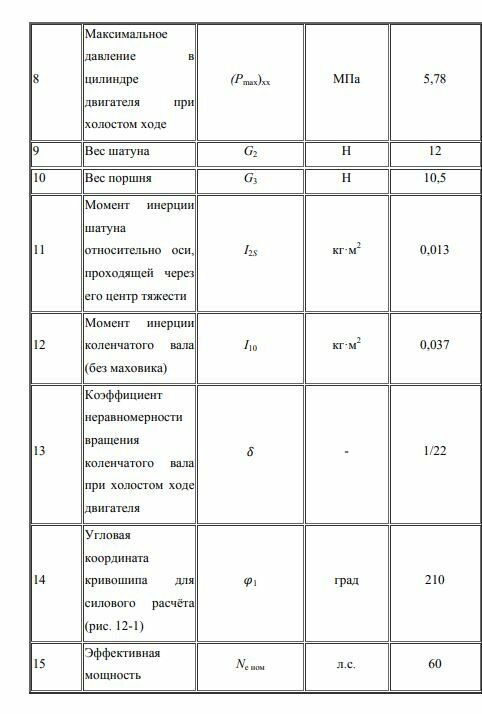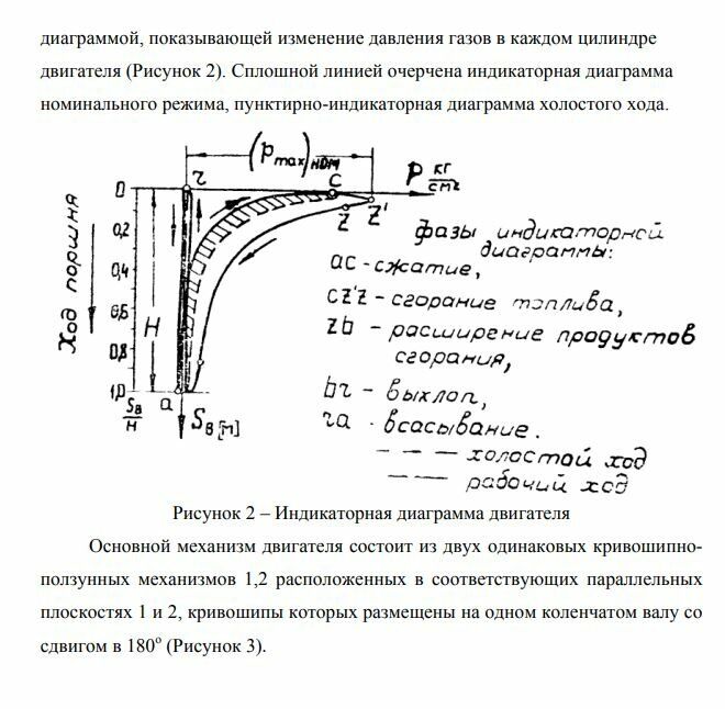 Двухосный грузовой автомобиль средней грузоподъемности приводится в движение двигателем внутреннего сгорания мощностью в 60-70 л с. и может развивать скорость до 120 км/час. Колесный ход автомобиля (рисунок 1) состоит из силовой установки (двигатель 1 с маховиком) и трансмиссии, включающей муфту сцепления, коробку передач 2, карданный вал 3 с дифференциалом в ведущие колеса 4.Двигатель установки четырехтактный, двухцилиндровый с вертикальным рядным расположением цилиндров и водяным охлаждением. Различают два режима работы двигателя: 1) при холостом ходе, когда муфта сцепления выключена, и 2) при движении автомобиля (номинальный режим), когда муфта сцепления соединяет коленчатый вал с остальными механизмами автомобиля. Рабочий цикл в каждом цилиндре двигателя совершается за 2 оборота коленчатого вала и характеризуется индикаторной диаграммой, показывающей изменение давления газов в каждом цилиндре двигателя (Рисунок 2). Сплошной линией очерчена индикаторная диаграмма номинального режима, пунктирно-индикаторная диаграмма холостого хода.