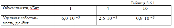 Определить себестоимость оперативно - запоминающего устройства (ОЗУ) с объемом памяти 64 кБит на основе построения зависимости удельных затрат на бит информации от объема памяти прибора. Зависимость удельных затрат (себестоимости) определяется по рез