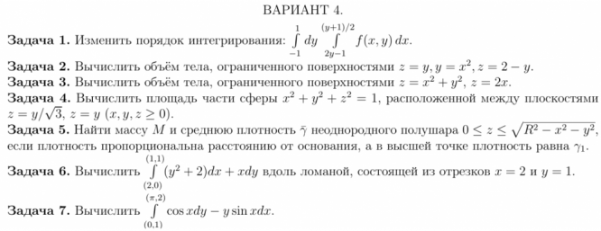 Вариант 4 - Дз-1 "Кратные и криволинейные интегралы"